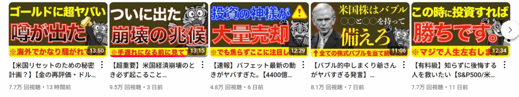 こうした動画のタイトルには「米国経済崩壊」など強い表現を使うことも多く、再生数を伸ばす一方で「あおりが強い」という批判の声もあります。