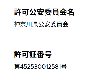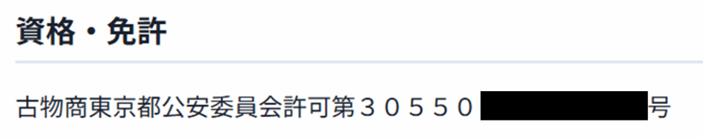 ショップによっては以下のように許可証情報を掲載しているサイトもあります。