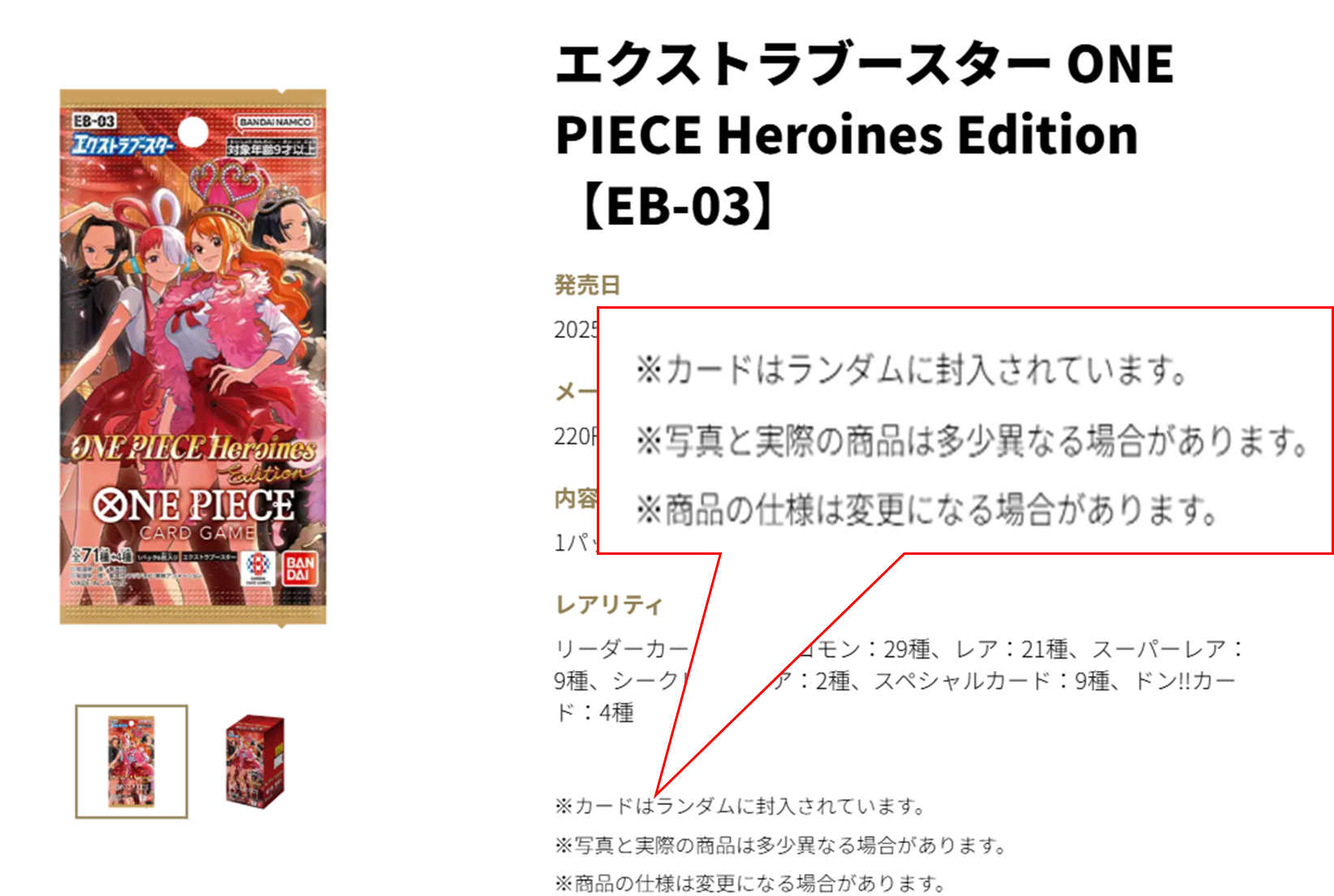 例:ポケモンカードでは1BOXにSR以上が1枚以上封入。