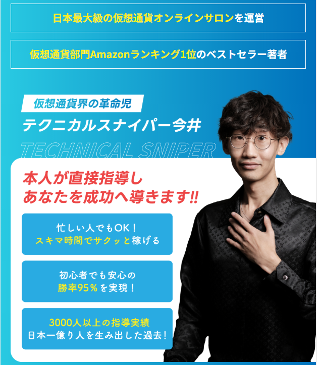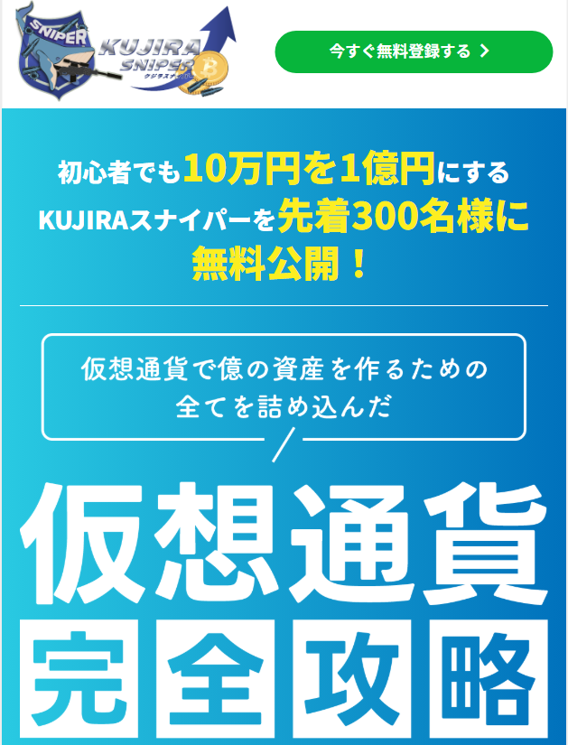 KUJIRAスナイパーは、テクニカルスナイパー今井氏が運営する仮想通貨投資サービスです。