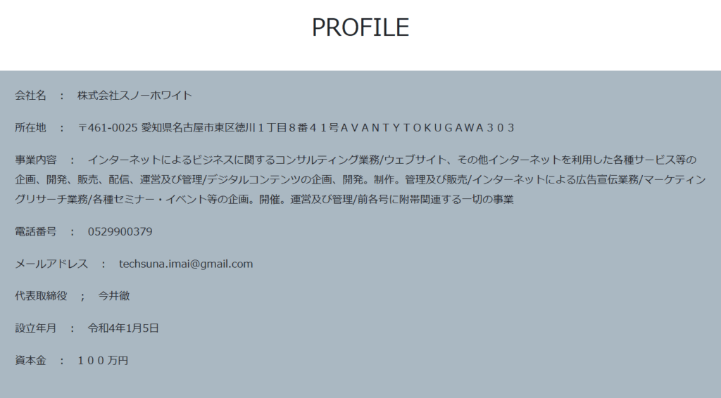 設立年月は令和4年1月5日、資本金100万円、代表取締役は今井徹氏と記載されていますが 、主力事業として展開されているはずの投資関連サービスについて公式サイトで触れられていないのは不自然です。