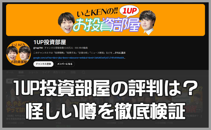 結論から言うと、1UP投資部屋は過去の炎上騒動により疑念を持たれることもありますが、法的な問題はなく、現在は慎重な情報発信を行っている信頼性の高いチャンネルです。