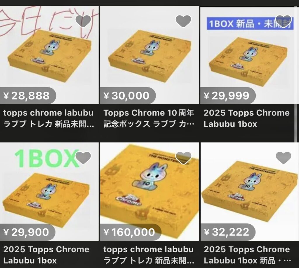 メルカリでは、Labubuトレカの未開封BOXが 29,000〜35,000円前後で多く出品されています。
