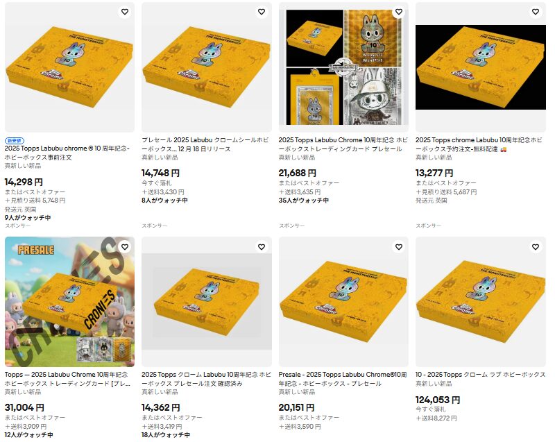 海外の通販サイトでは、ラブブトレカが 17,000円前後(約110〜130ドル) でプリセール出品(販売前出品)されていました。