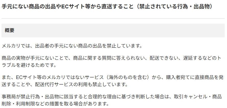 ※メルカリでは手元に商品がない状態での出品は禁止されています。