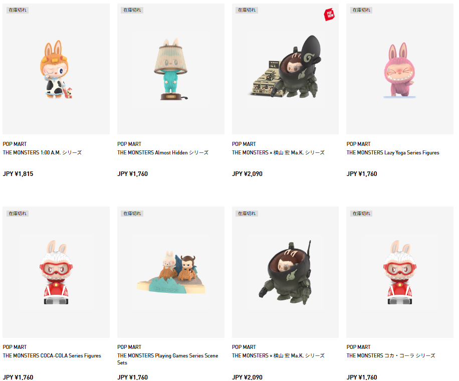 popmart公式サイトでは現在でもラブブのブラインドボックスは『在庫切れ』の状態が続いており、人気の高さがうかがえます。