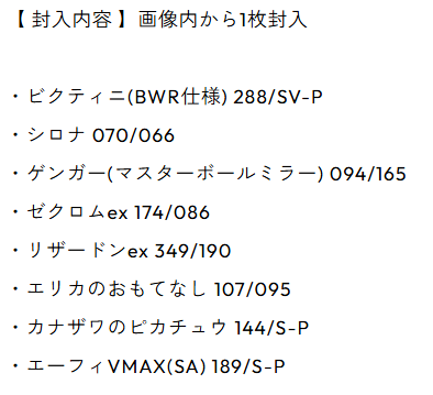 封入内容は明記されていますが、当たり残数がわからないため、当たりカードが残っていることを信じて購入するしかありません。