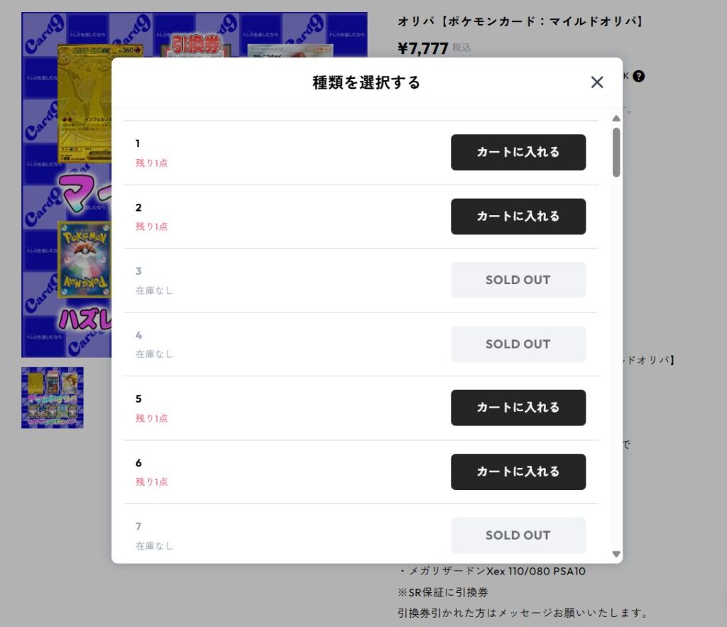 一番くじとは違って、当たりカードが残っているか分からない状態で購入しなければなりません。