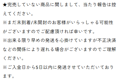 それが「★完売していない商品に関しまして、当たり報告は控えてください。」というルールです。
