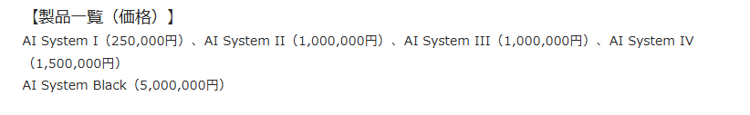 また、本製品の料金は公式サイトに記載がありますがかなりの高額となっています。