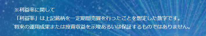 提示される実績は抽出銘柄のうち上昇したものだけを選んで掲載している可能性が高く、抽出されたのに下落した銘柄や含み損を抱えた事例は表に出てきません。