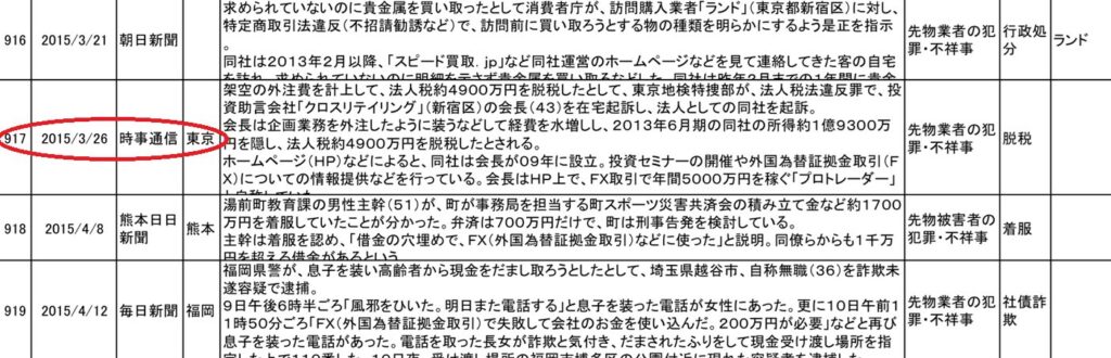 また、同社の創業者に関わる脱税事件も報道されており、情報商材の販売などで得た約1億9,300万円の所得を隠蔽し、法人税約4,900万円を脱税したとして起訴された経緯があります。