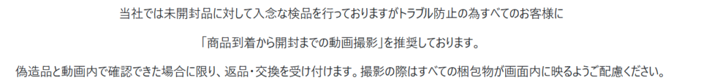 商品の状態に不備があった場合、開封動画があることで運営に説明しやすく、返品交換の判断もスムーズになります。