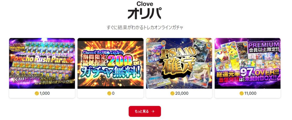 Cloveオリパは、法人運営による信頼感とアプリならではの演出を兼ね備えたオンラインオリパです。