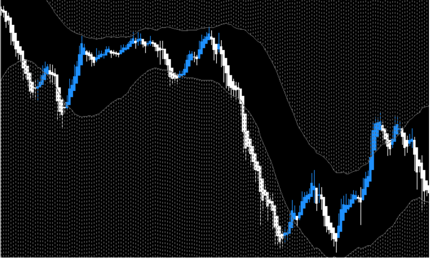 第一のドラゴンバンドは、ボリンジャーバンドに似た帯状の表示で、トレンド方向や利益確定の目安を視覚的に示します。