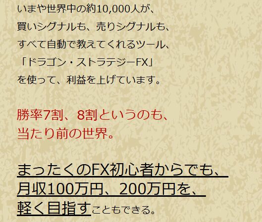 ドラゴン・ストラテジーFXのマーケティングは、FX初心者の心理を巧みについています。