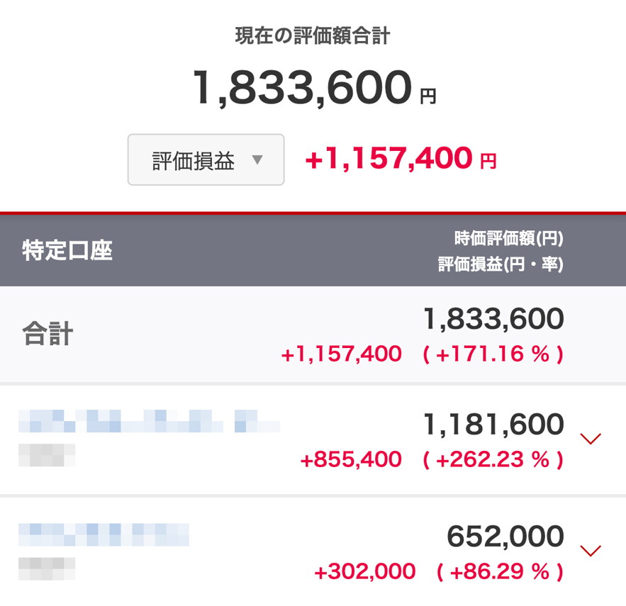 すると1ヵ月後には資産が183万円以上になり、含み益は115万円ほどに増えました。