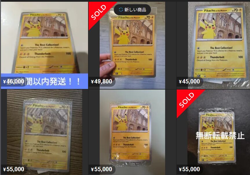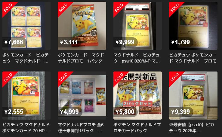 たとえば、美術館コラボとして配布されたゴッホピカチュウや、マクドナルドとのコラボで展開されたプロモカードも、配布方法や価格帯に関係なく、限定品として流通量が限られていたことで転売が発生しました。