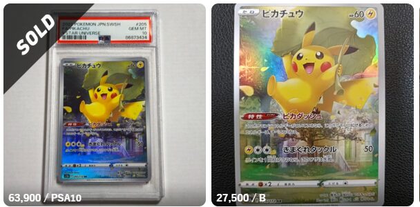 一見すると同じカードでも、素体とPSA10では価格が大きく異なるケースがあります。