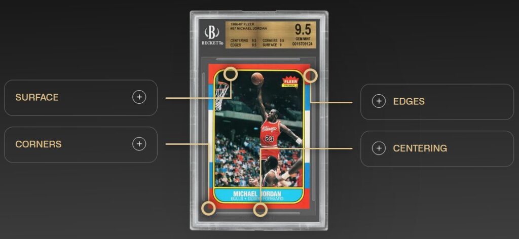 PSAグレーディングとは、センタリング・角・縁・表面の4要素を基準にした総合評価です。