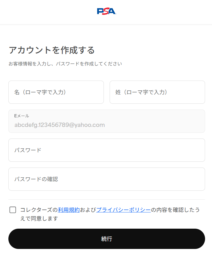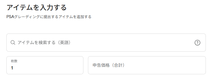 アカウント作成後は、鑑定に出すカードの情報などを入力していきます。