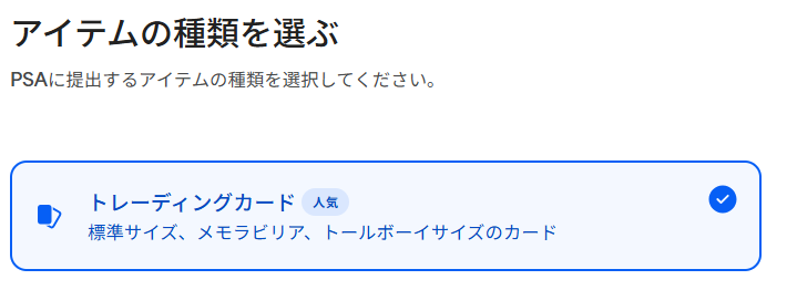 通常のトレーディングカードであれば「Trading Card」を選択します。