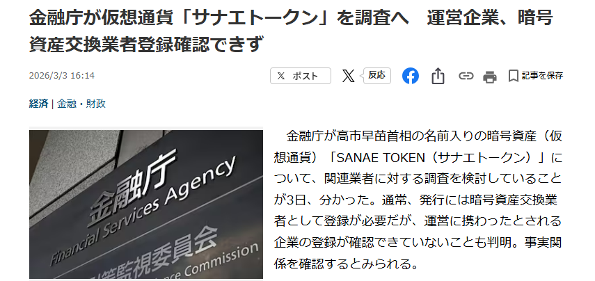 10日間という異例の短命で終わったサナエトークン騒動を受け、金融庁は関連業者への調査を開始、日本で初めて現職首相の名前を冠したトークンが社会問題化した事例として、暗号資産をめぐる法整備や投資家保護のあり方が改めて問われることになりました。