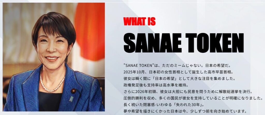 サナエトークン(SANAE TOKEN)は、2026年2月25日にSolanaブロックチェーン上で発行された仮想通貨です。