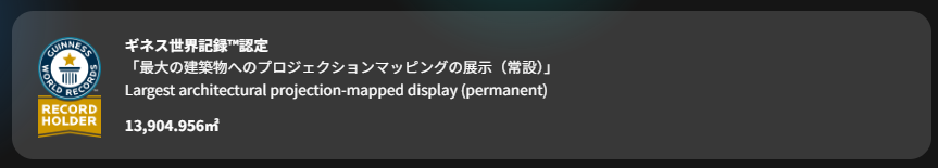 さらに、この取り組みは「最大の建築物へのプロジェクションマッピングの展示(常設)」としてギネス世界記録™に認定されています。