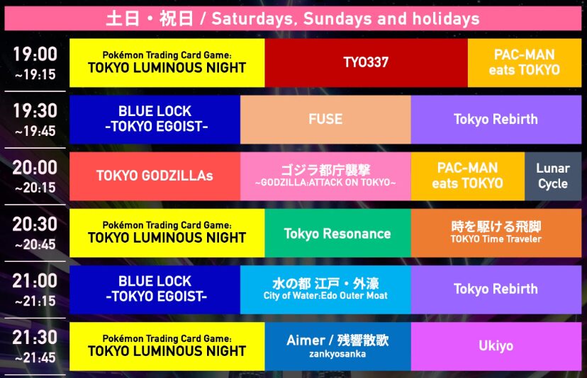 TOKYO Night & Lightの上映プログラムはスケジュールが決まっており、公式サイトでタイムラインが公開されています。
