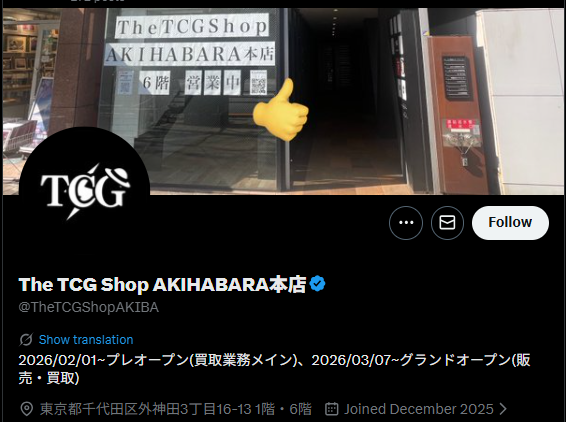 秋葉原という立地もあり、ポケモンカードをはじめとしたトレカの買取・販売を中心に展開していたショップで、SNS上でも一定の認知を獲得していました。